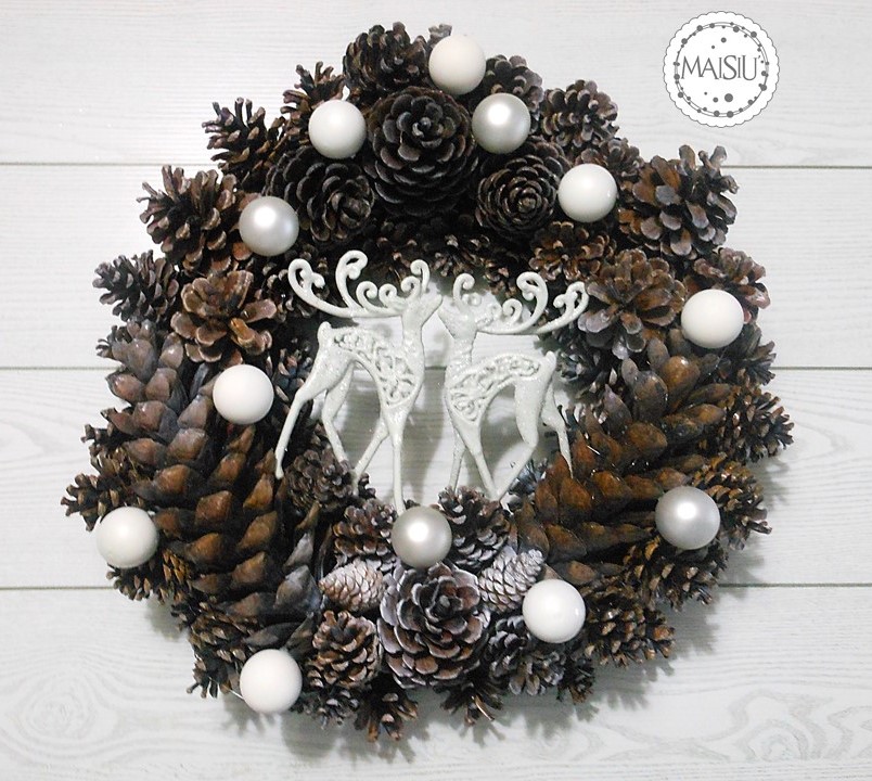 04-ghirlanda-pigne-bianco-cerco Ghirlanda in pigne decorata con applicazioni di colore bianco e perla. Mi piace Caricamento...